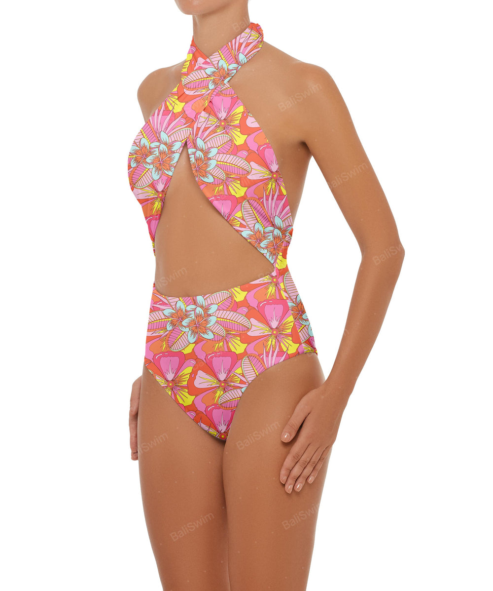 - Detail Feature: Halter criss cross one piece, Adjustable halter ties, Low back