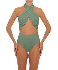 - Detail Feature: Halter criss cross one piece, Adjustable halter ties, Low back