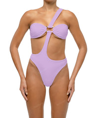 - Detail Feature: One shoulder detail, Wave ring detail, Front and back cut-out, High cut, Clasp closure