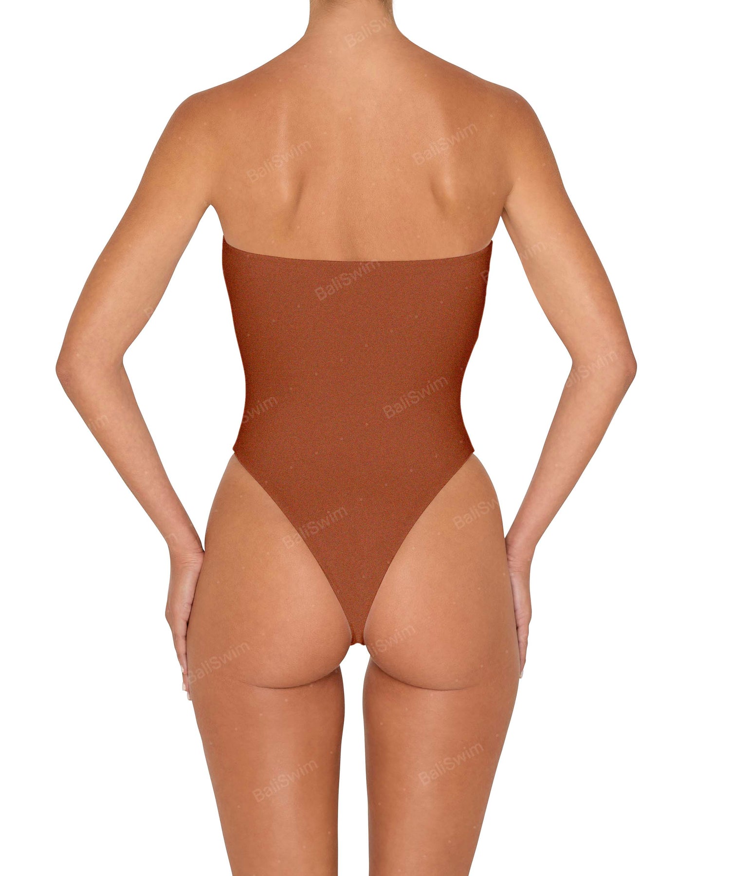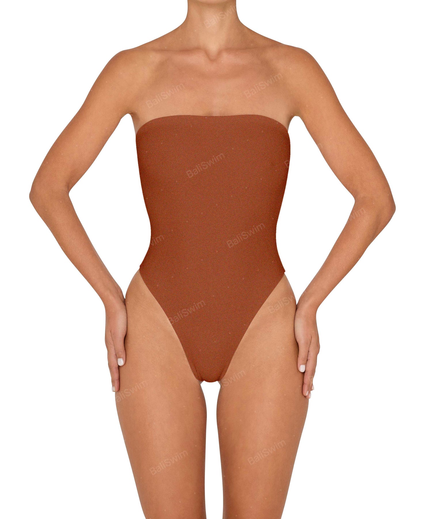 - Detail Feature: Classic strapless onepiece, high hip cut, silicon tape on the top bust to prevent slippage, and seamless finish