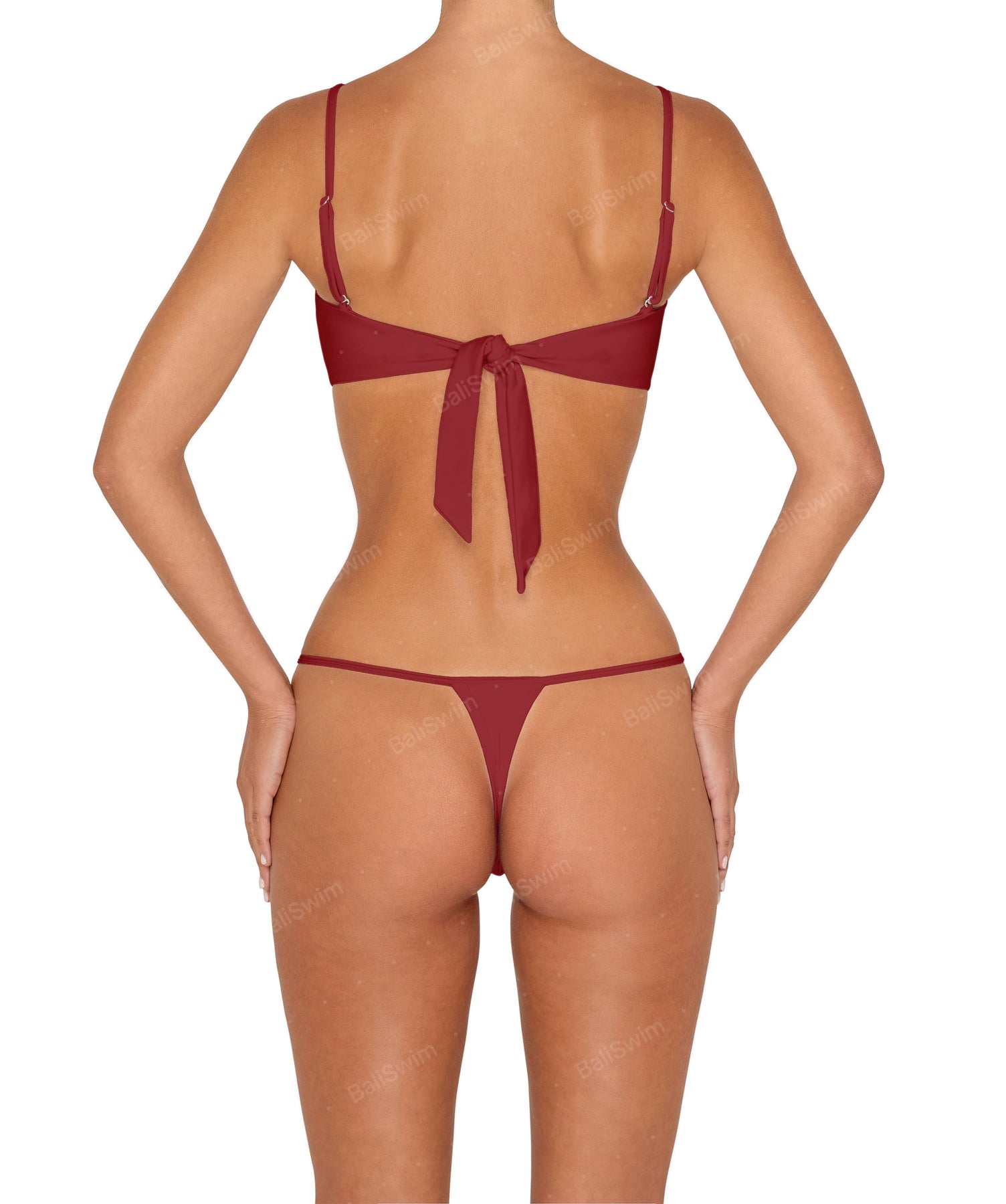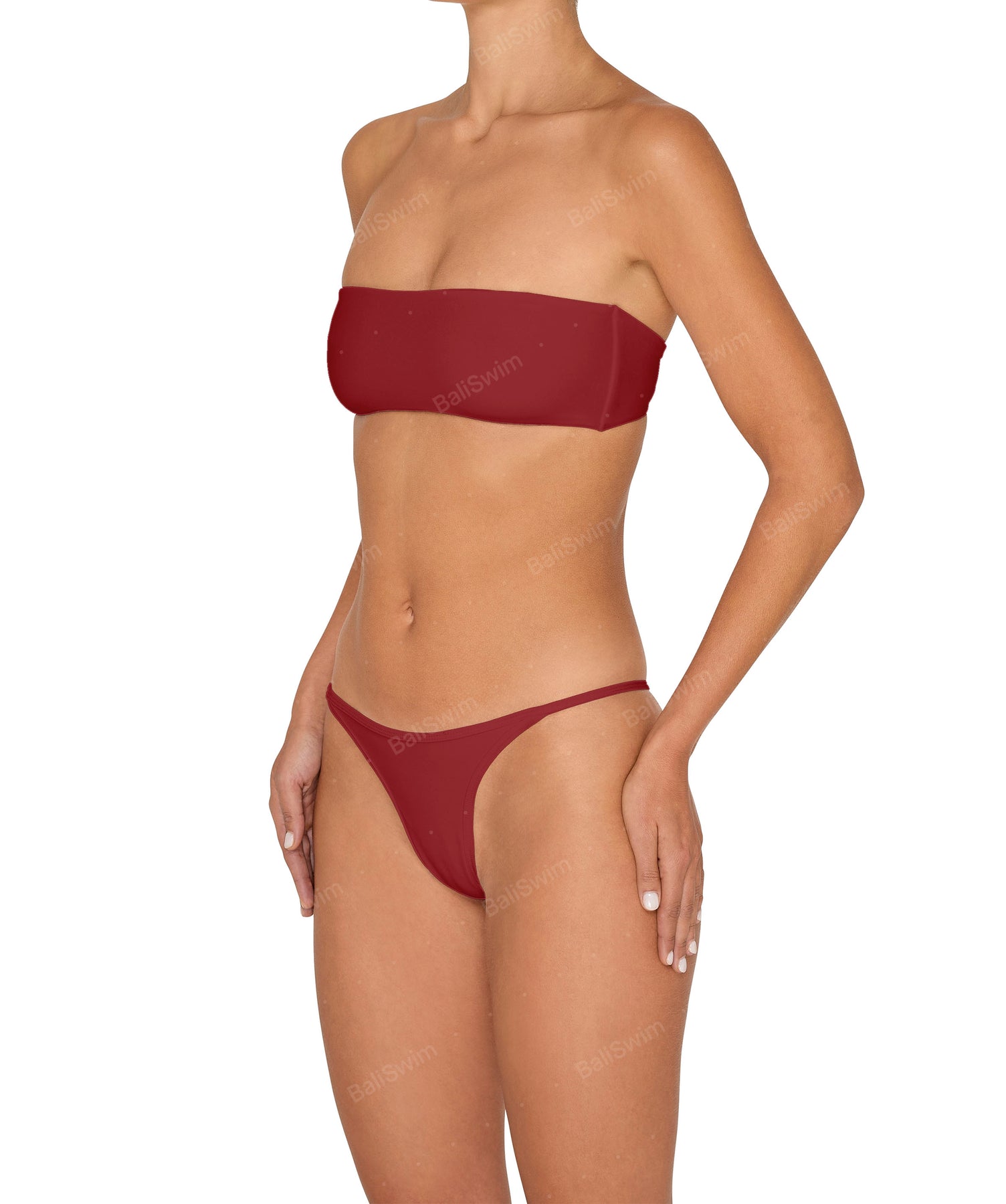 - Detail Feature: Self tied bandeau, boning on the side seam to give more structure, removable shoulder straps